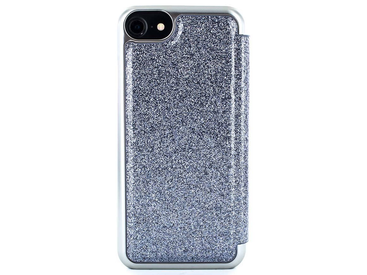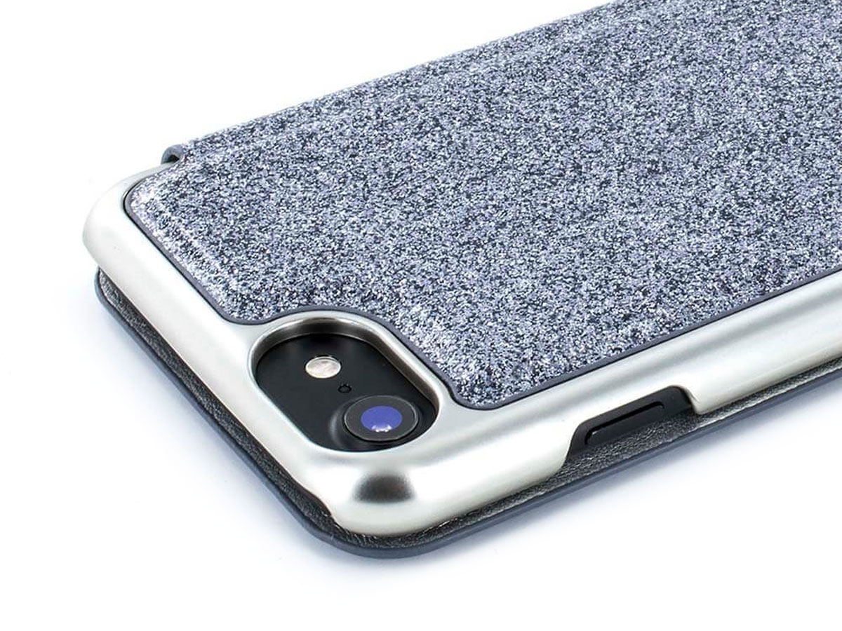 De case is gemaakt van een uniek kunstleer waar de glitters ín zitten, deze slijten dus niet weg en je komt zelf ook niet onder de glitters te zitten.