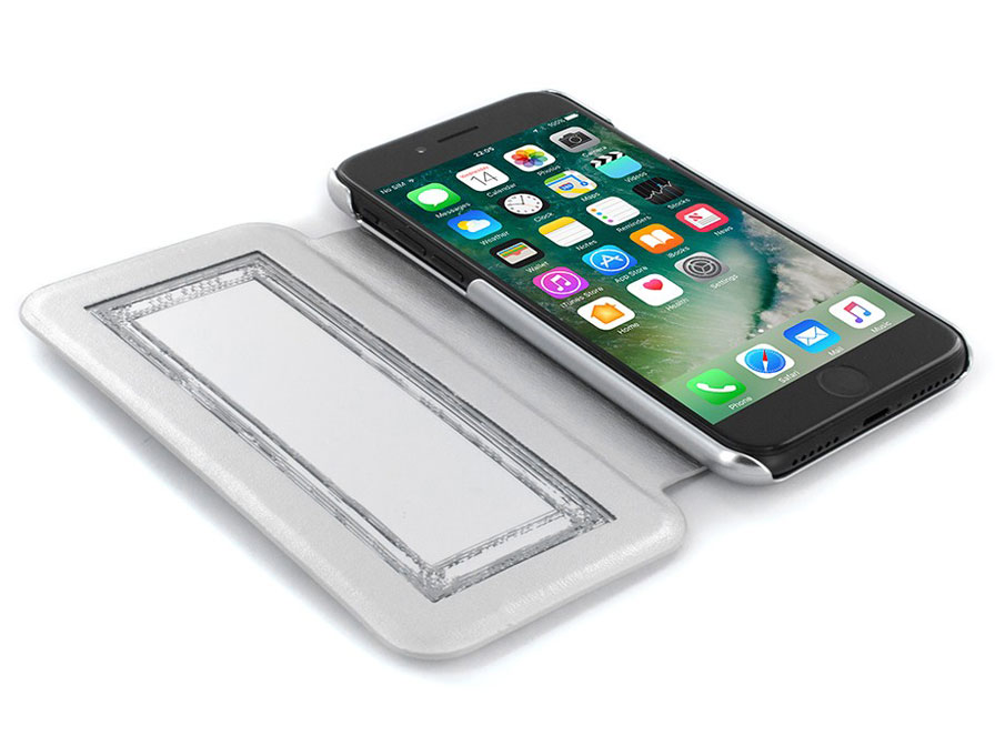 Het Ted Baker iPhone hoesje biedt bescherming rondom met een klepje over het scherm, waar aan de binnenkant een handig spiegeltje in zit. De iPhone 7 case heeft een onzichtbaar weggewerkte magneetsluiting die het hoesje een zeer slank design geeft. Bovendien houdt de sluiting het klepje ook geopend vast: erg handig in het gebruik.