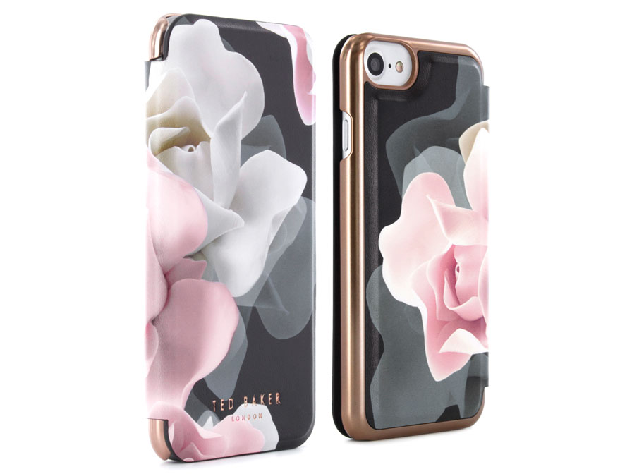 In de voering van het Ted Baker hoesje zit een handig spiegeltje voor de snelle check-up. Het toestel zelf blijft uiteraard volledig functioneel in het iPhone 8/7/6s/6 hoesje: met alle toetsen, aansluitingen en de camera is rekening gehouden.