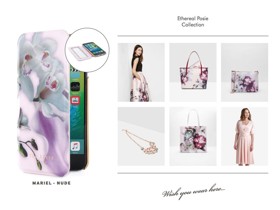 Dit luxe Ted Baker iPhone hoesje draagt de naam Mariel en beschermt ongekend stijlvol. De iPhone case is naast de iPhone 8 ook geschikt voor de iPhone 7, 6 en 6s. Het telefoonhoesje is uitgevoerd in de "Etheral Posie" print uit de nieuwste Ted Baker collectie in combinatie met een goudkleurige rand en Ted Baker logo voorop het hoesje.