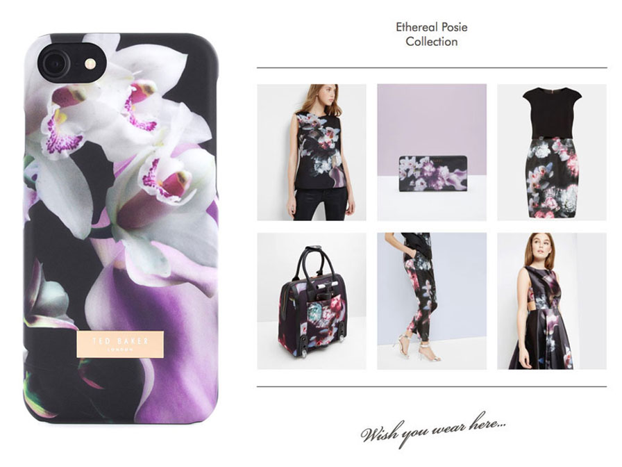 Het iPhone 8/7/6s/6 hoesje draagt de naam Mariel is uitgevoerd in de Ethereal Posie print uit de nieuwste Ted Baker collectie. Een goudkleurig metalen schildje met het Ted Baker logo maakt de luxe uitstraling van het iPhone hoesje compleet.