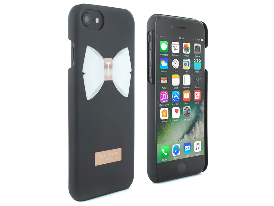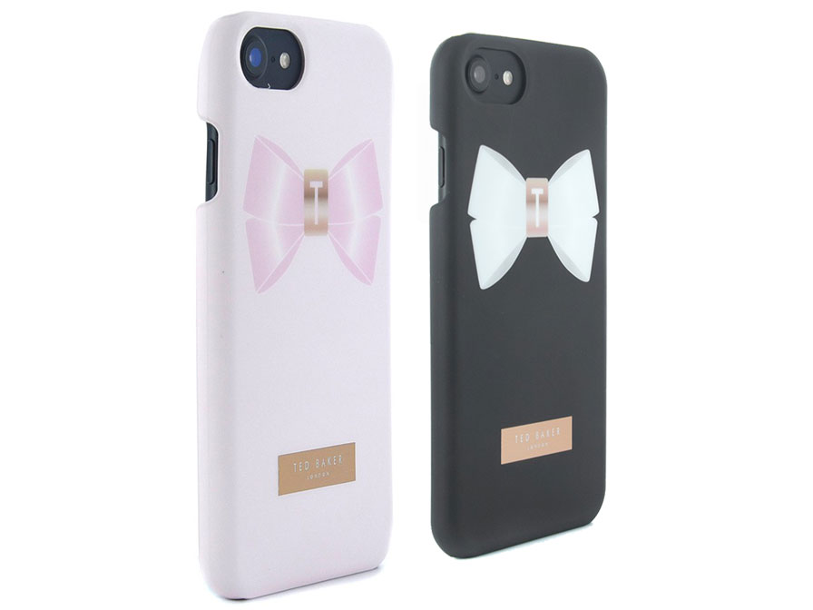 Deze schattige Ted Baker hoesjes zijn speciaal voor de iPhone 8, iPhone 7 en iPhone 6/6s ontworpen. Verkrijgbaar in zwart en roze met een print van de bekende TB strikjes. Een goudkleurig metalen logo achterop en de soft-touch afwerking geven de iPhone een luxe look.