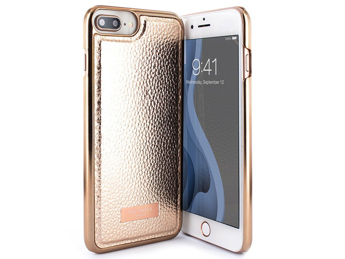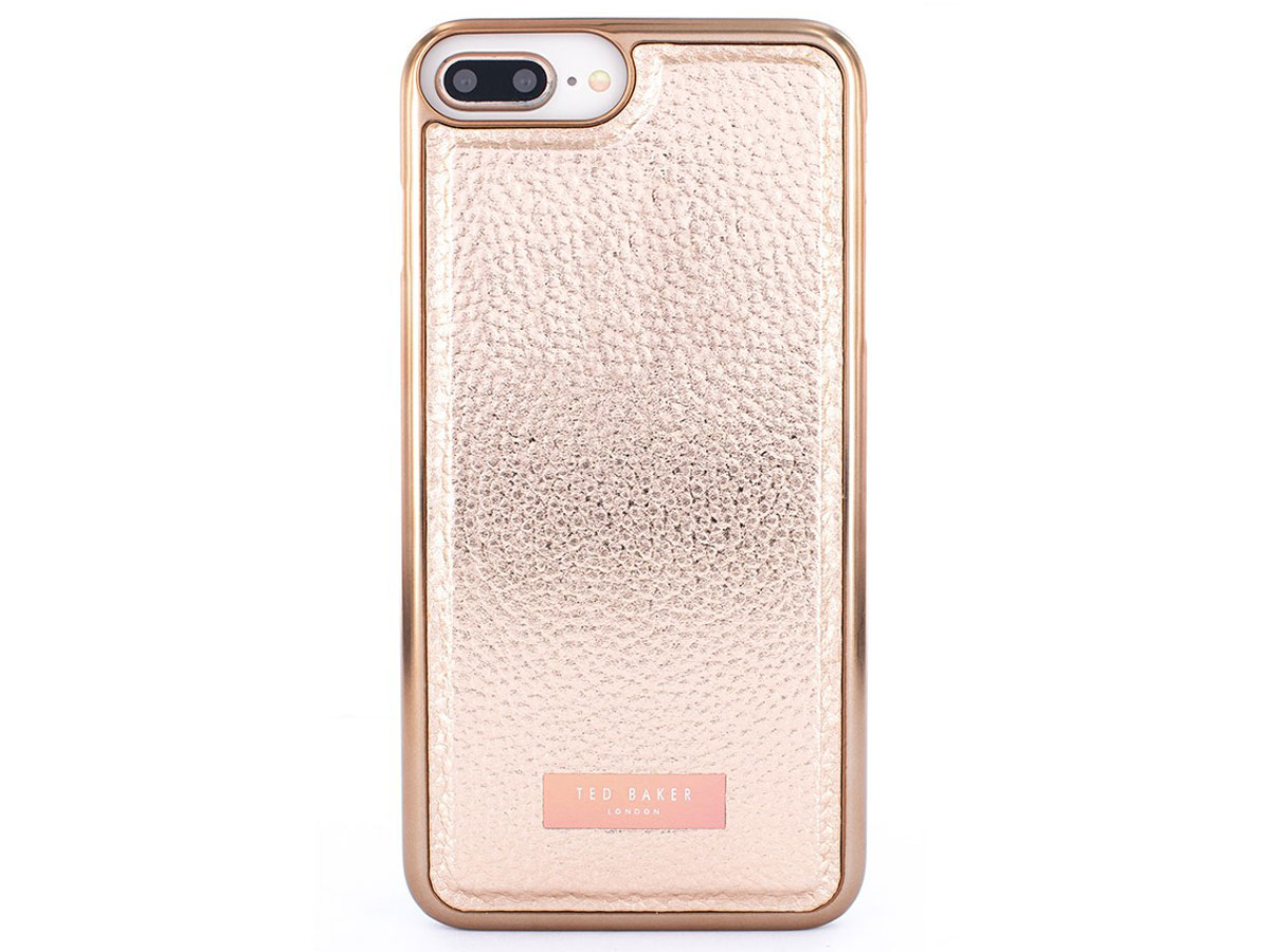 Dit luxe Ted Baker hoesje is speciaal ontworpen voor de iPhone 8 Plus, de iPhone 7 Plus en de iPhone 6/6s Plus. De case heeft een basis van rosé goud kunststof en is ton-sur-ton bekleed met glanzend rosé goud Vegan leather. Een metalen Ted Baker logo maakt de stylish look van dit telefoonhoesje compleet.