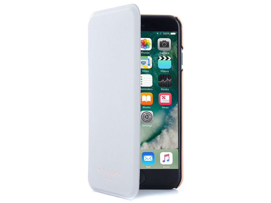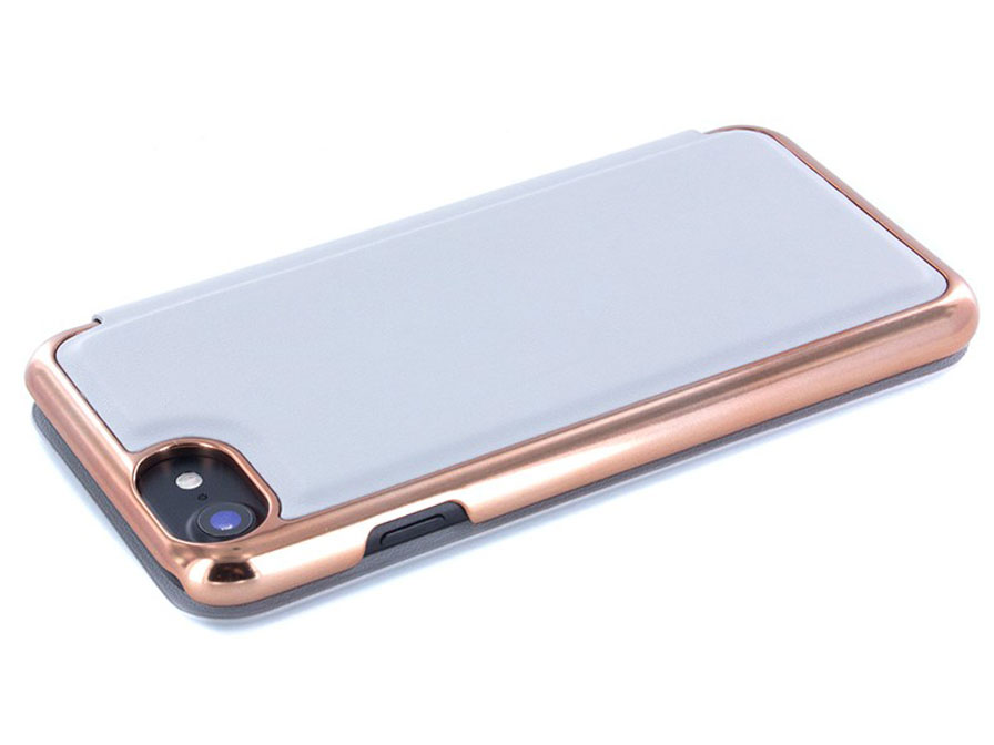 Dit fraaie iPhone hoesje van Ted Baker is geschikt voor de iPhone 8, de iPhone 7 en de iPhone 6/6s. Verkrijgbaar in Dove Grey met afwerking in Rose Gold geeft deze nieuwe kleur weer een geheel nieuwe uitstraling aan de geliefde Shannon Mirror Folio van Ted Baker.