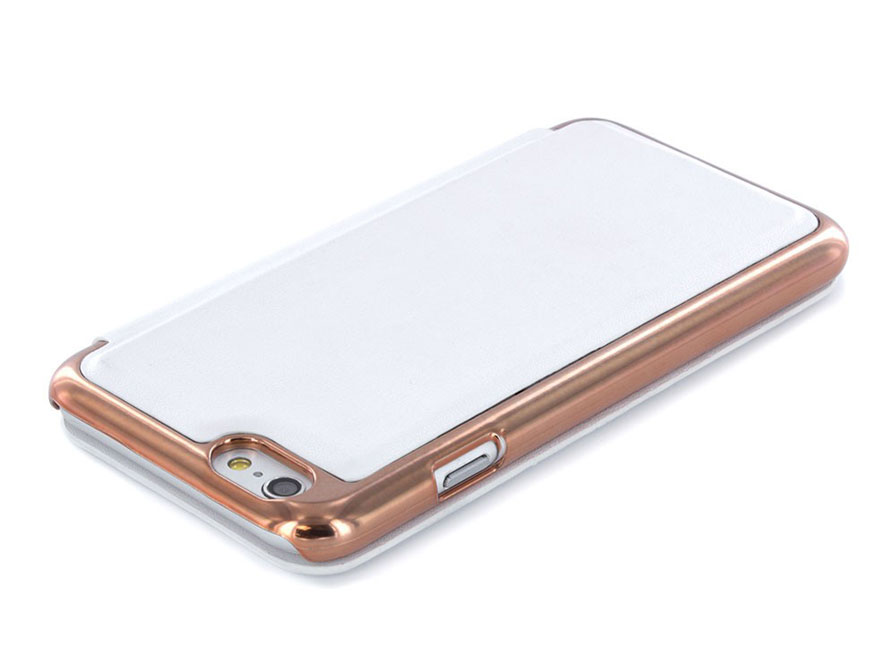 Deze originele Ted Baker Shannon sideflip case is speciaal voor de iPhone 6/6S ontworpen. Het Ted Baker iPhone 6/6S hoesje is verkrijgbaar in wit of roze in combinatie met een unieke rosé gouden basis. Ook het Ted Baker logo is voorop de case in rosé goud aangebracht in het leer. Wat het hoesje nog unieker maakt is het spiegeltje dat in de binnenvoering zit.