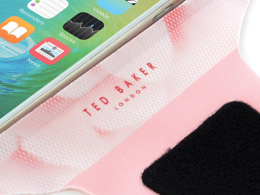 De Ted Baker sport-armband is voorzien van een transparant membraan over het scherm van de smartphone. Hierdoor blijft het mogelijk om je telefoon te bedienen wanneer deze in de sportarmband zit. Tegelijkertijd is deze hierdoor beschermt tegen weer en wind. Openingen in de sportarmband zorgen dat het geen probleem is een koptelefoon aan te sluiten.