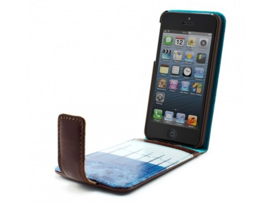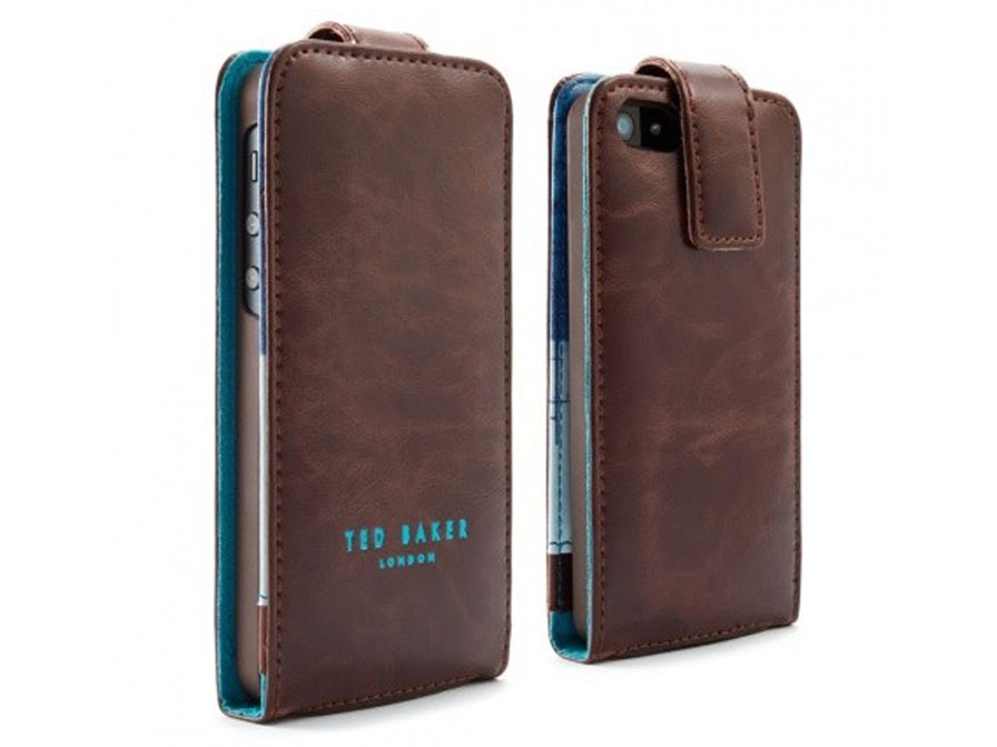 Dit originele Ted Baker "Telegraph " flipcase voor iPhone 5 en iPhone 5S is speciaal voor dit model iPhone ontworpen. Het hoesje is uitgevoerd in een chique bruine kleur, en heeft opvallende lichtblauwe details zoals het Ted Baker logo voorop het hoesje. In de voering is een print uit de Ted Baker collectie aangebracht.