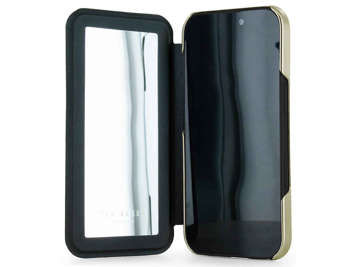Het Ted Baker iPhone 17 hoesje heeft een mooi slank design, terwijl deze uw toestel toch rondom beschermt. Dit is te danken aan de onzichtbare magneetsluiting die bovendien twee kanten op werkt en het klepje ook omgeslagen vast houdt. Ideaal! In de voering van het klepje vindt u daarnaast een spiegeltje: klaar voor een snelle touch-up op ieder gewenst moment.