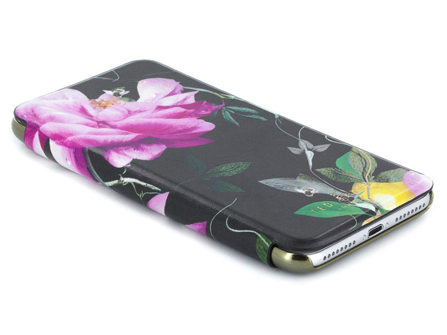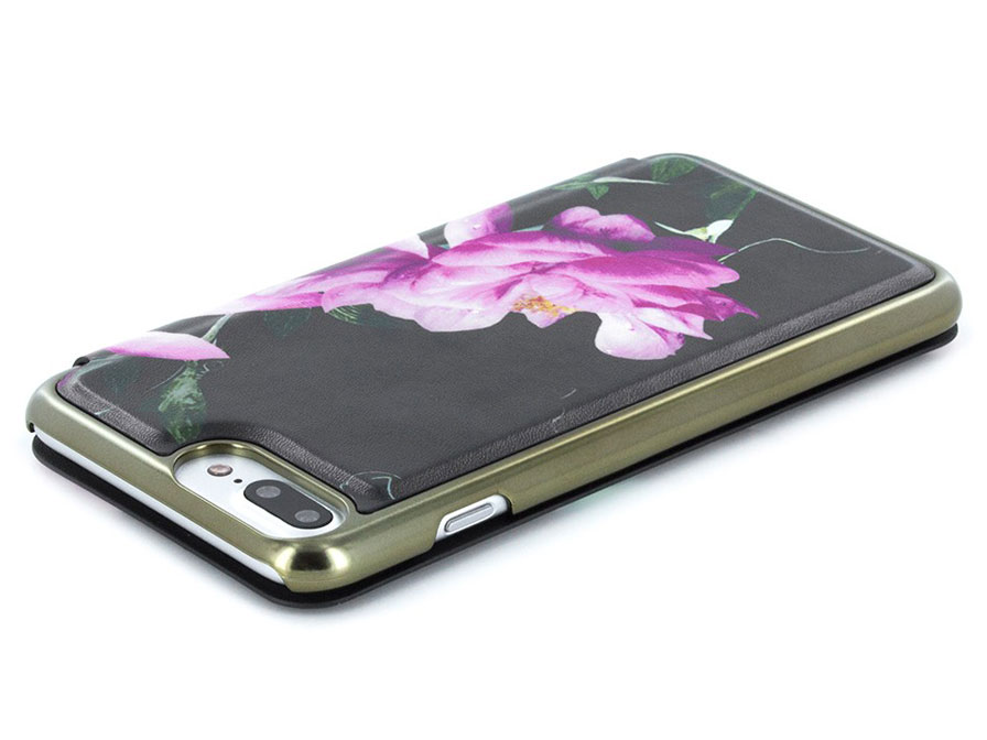 De prachtige print is gecombineerd met een gouden rand en goudkleurig Ted Baker logo voorop. In de voering van het Ted Baker iPhone hoesje zit een handig spiegeltje verstopt.