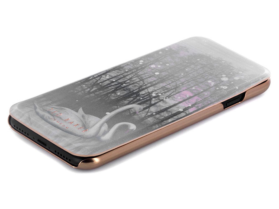 De Wendore is een uniek Ted Baker iPhone hoesje voor de iPhone 8, iPhone 7 én de iPhone 6/6s. Het telefoonhoesje draagt de Swan Lake print uit de nieuwste Ted Baker collectie, die de case in combinatie met de goudkleurige rand en het logo voorop tot een ware blikvanger maakt.