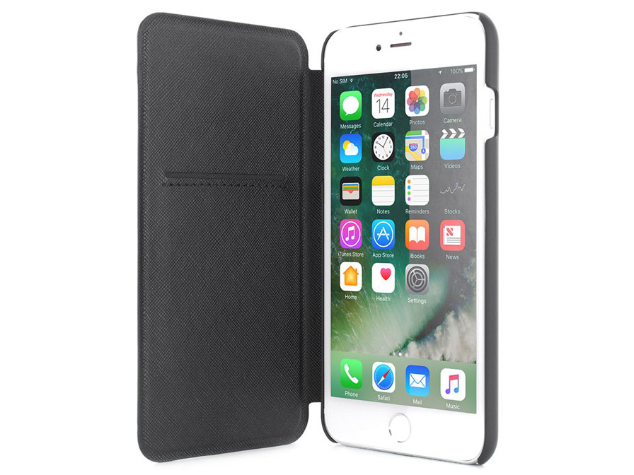 Dit stijlvolle Ted Baker iPhone hoesje is geschikt voor de iPhone 8 Plus, iPhone 7 Plus en de iPhone 6/6s Plus. Het telefoonhoesje draagt de naam Yogtop en is uitgevoerd in representatief zwart met een luxe metalen Ted Baker logo voorop en kan een pasje herbergen in de voering.