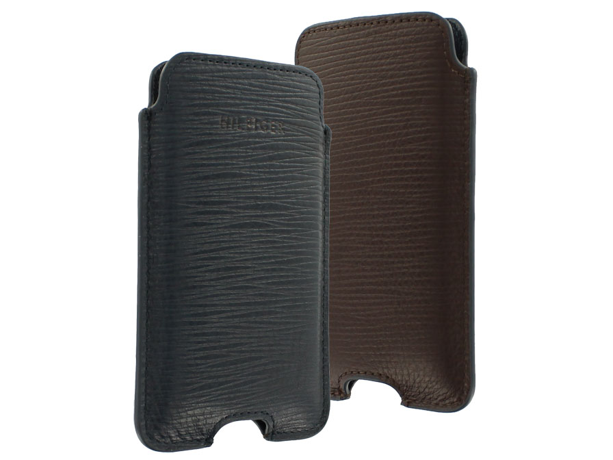 Deze echt leren sleeve van Tommy Hilfiger is speciaal voor de iPhone 5 en 5S ontworpen. De sleeve heeft een uniek tweekleurig design, waarbij de voorzijde donkerbruin, en de achterzijde donkerblauw is.