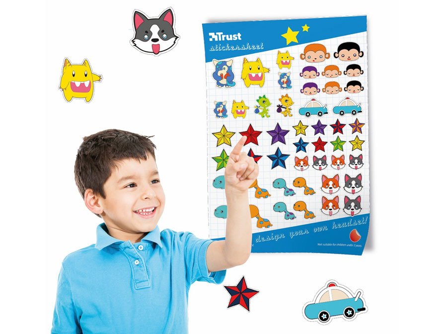 Deze Sonin koptelefoon van Trust is speciaal voor kinderen ontworpen. Niet alleen heeft de koptelefoon een bijzonder vrolijk ontwerp dat met het meegeleverde stickervel nóg leuker gemaakt kan worden, ook heeft de koptelefoon een actieve volumebeperking. Dankzij deze beperking kan de koptelefoon nooit 'te hard' staan en is daarmee volkomen veilig voor kinderen.