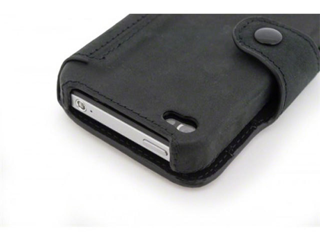 De iPhone 4/4S klikt eenvoudig in de case, waarna de case dichtgeklapt kan worden zodat ook het scherm beschermt is. De case sluit met een drukknoop. De binnenzijde van de case is afgewerkt met niet-krassend materiaal.