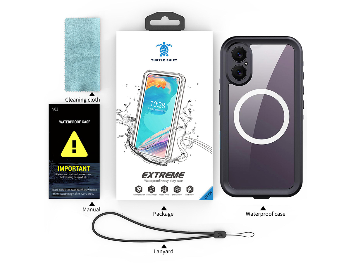 Dit waterdichte iPhone 17 hoesje van het merk Turtle Shift heeft een IP68 rating en kan tot 30 minuten lang tot 2 meter onder water gebruikt worden. Daarnaast is deze case zand- en stofdicht én voorzien van een zeer doeltreffende bescherming 360 graden rondom. Tot slot is de case zelfs compatible met MagSafe!