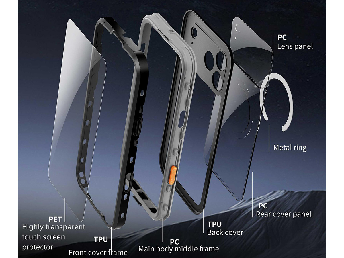 Dankzij de in de case geïntegreerde magnetische ring, is dit waterdichte iPhone 17 hoesje te gebruiken met MagSafe accessoires zoals opladers, autohouders, stands en meer.