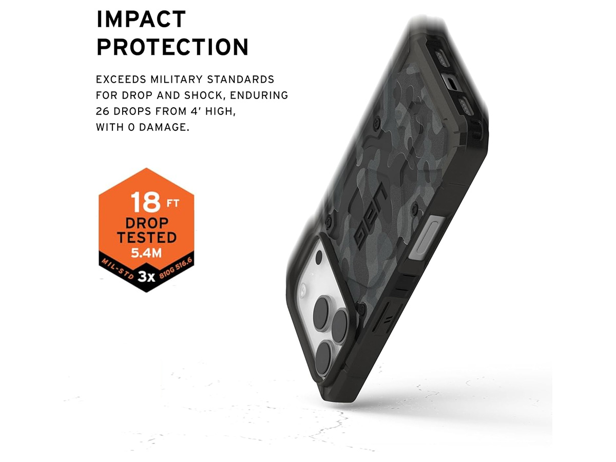 Laat je niet misleiden door het slanke profiel. De Urban Armor Gear Pathfinder SE iPhone 17 Pro case is uitgerust met een vederlichte armor-shell en een slagvast frame. De kern met innovatief HEX patroon absorbeert schokken bij impact, terwijl de verhoogde randen rondom het scherm je display beschermen tegen krassen en barsten bij een val. Voor extra veiligheid zijn de hoeken verdikt en van schokabsorberend, onbreekbaar TPU materiaal dat vallen van grote hoogte moeiteloos kan opvangen.
