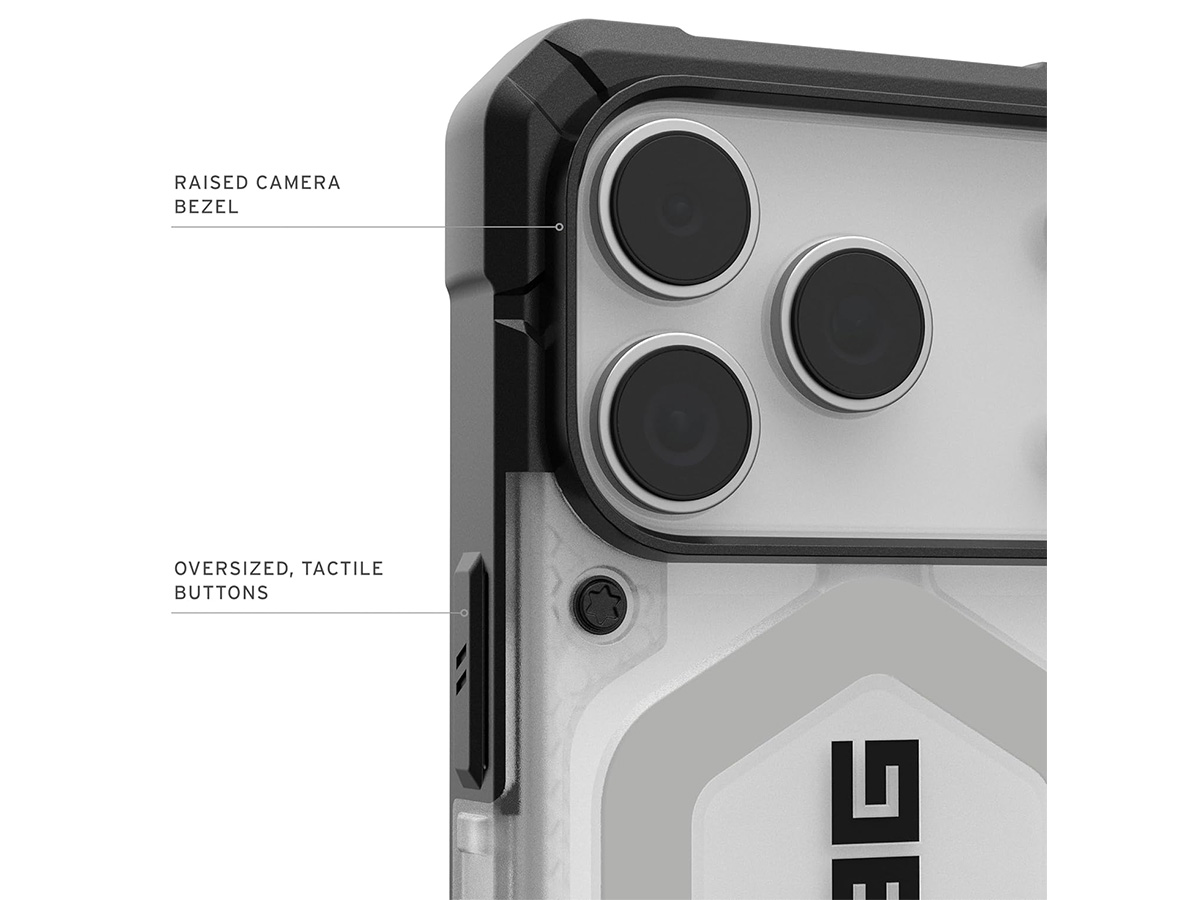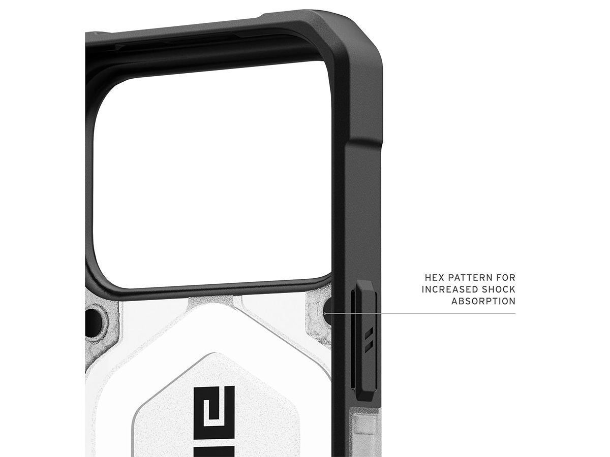 Laat je niet misleiden door het slanke profiel. De Urban Armor Gear Pathfinder Clear iPhone 17 Pro Max case is uitgerust met een vederlichte armor-shell en een slagvast frame. De kern met innovatief HEX patroon absorbeert schokken bij impact, terwijl de verhoogde randen rondom het scherm je display beschermen tegen krassen en barsten bij een val. Voor extra veiligheid zijn de hoeken verdikt en van schokabsorberend, onbreekbaar TPU materiaal dat vallen van grote hoogte moeiteloos kan opvangen.
