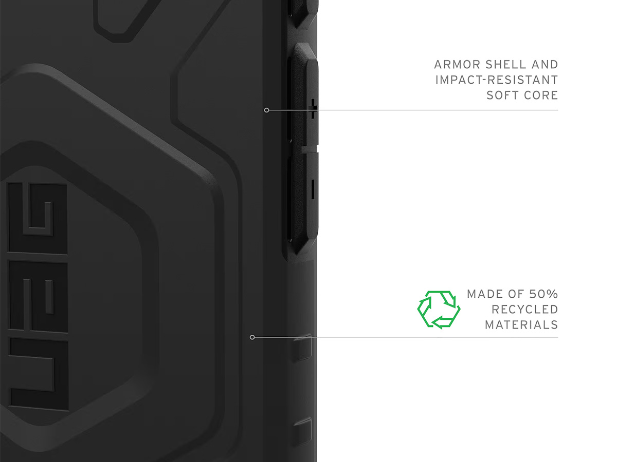 Bij het ontwerp van de UAG Pathfinder Clear is ook aan duurzaamheid gedacht. De hoes is gemaakt van 25% gerecyclede materialen, waardoor duurzaamheid hand in hand gaat met hoogwaardige prestaties.