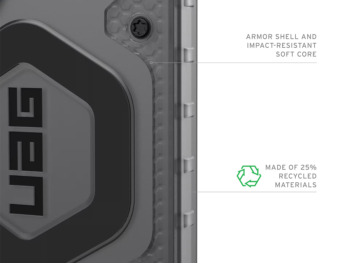 Bij het ontwerp van de UAG Pathfinder Clear is ook aan duurzaamheid gedacht. De hoes is gemaakt van 25% gerecyclede materialen, waardoor duurzaamheid hand in hand gaat met hoogwaardige prestaties.