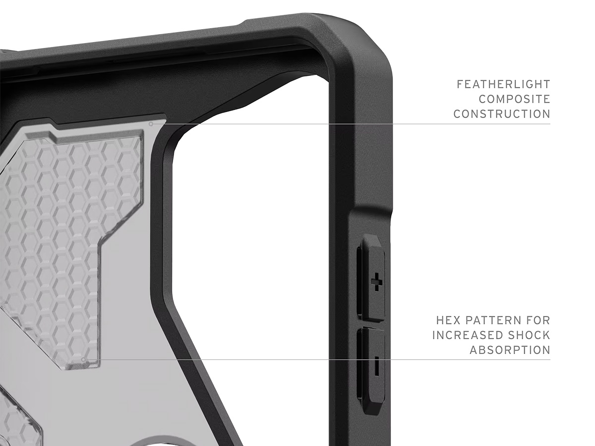 Laat je niet misleiden door het slanke profiel. De Urban Armor Gear Pathfinder Samsung Galaxy S26 Ultra case is uitgerust met een vederlichte armor-shell en een slagvast frame. De kern met innovatief HEX patroon absorbeert schokken bij impact, terwijl de verhoogde randen rondom het scherm je display beschermen tegen krassen en barsten bij een val. Voor extra veiligheid zijn de hoeken verdikt en van schokabsorberend, onbreekbaar TPU materiaal dat vallen van grote hoogte moeiteloos kan opvangen.