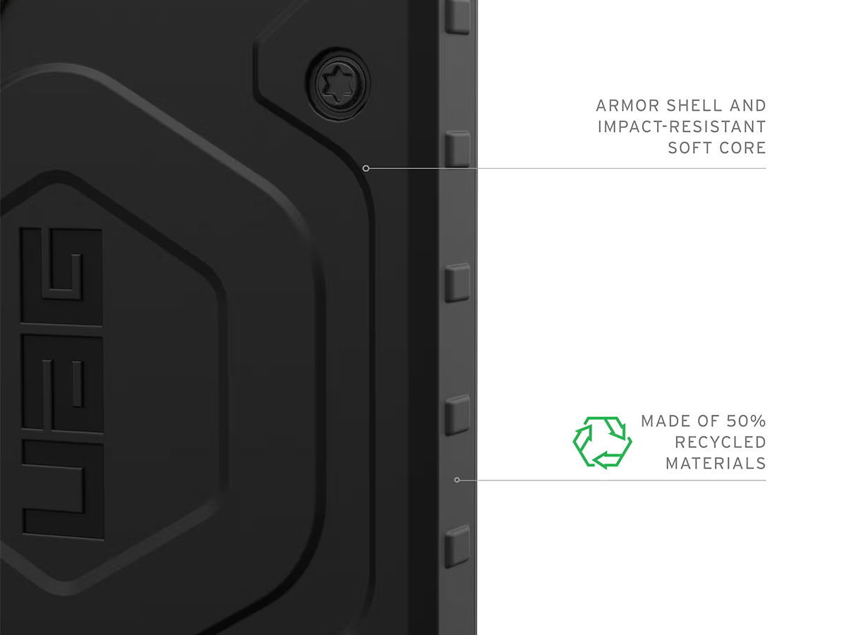 Bij het ontwerp van de UAG Pathfinder Clear is ook aan duurzaamheid gedacht. De hoes is gemaakt van 25% gerecyclede materialen, waardoor duurzaamheid hand in hand gaat met hoogwaardige prestaties.