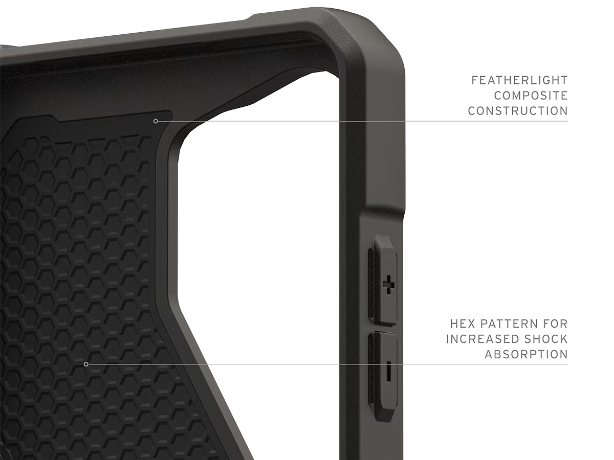 Laat je niet misleiden door het slanke profiel. De Urban Armor Gear Pathfinder Samsung Galaxy S26 Ultra case is uitgerust met een vederlichte armor-shell en een slagvast frame. De kern met innovatief HEX patroon absorbeert schokken bij impact, terwijl de verhoogde randen rondom het scherm je display beschermen tegen krassen en barsten bij een val. Voor extra veiligheid zijn de hoeken verdikt en van schokabsorberend, onbreekbaar TPU materiaal dat vallen van grote hoogte moeiteloos kan opvangen.