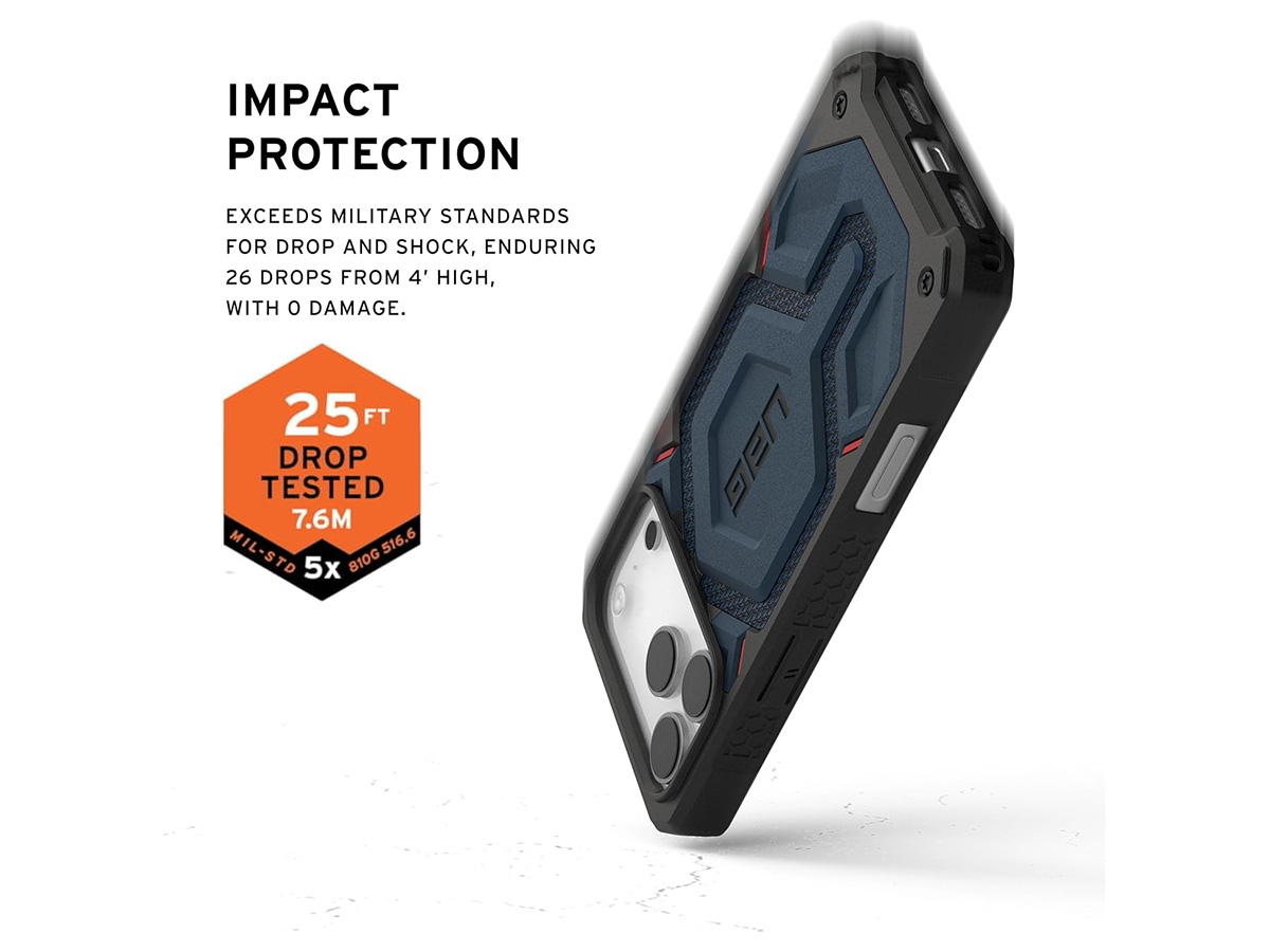 Deze hoes is onafhankelijk getest op valbescherming tot 7,5 meter en voldoet maarliefst 5 keer op rij aan de militaire valstandaard MIL-STD-810G-516.6. Dat maakt de Monarch Pro Kevlar® tot een betrouwbare keuze voor outdoor gebruik, werk in veeleisende omgevingen of gewoon extra gemoedsrust in het dagelijks leven.