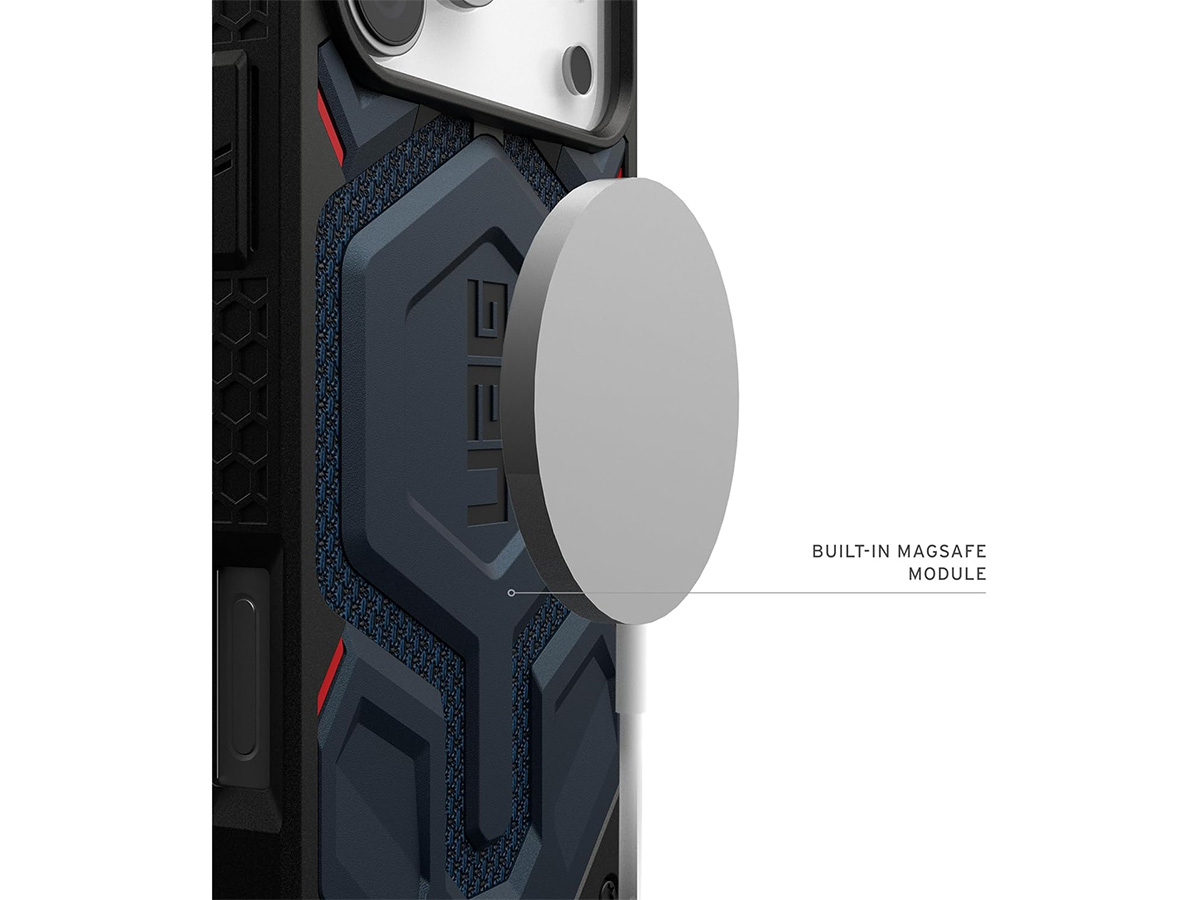 De UAG Monarch Pro Case voor iPhone 17 Pro Max is uitgerust met een krachtige ingebouwde magneet en werkt daardoor naadloos samen met de Apple MagSafe oplader en andere MagSafe compatible magnetische accessoires, zoals wallets, stands, autohouders en meer!