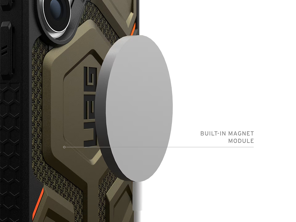 De UAG Monarch Pro Case voor Samsung Galaxy S26 Ultra is uitgerust met een krachtige ingebouwde magneet en werkt daardoor naadloos samen met Qi2 en MagSafe oplader en accessoires zoals wallets, stands, autohouders en meer!