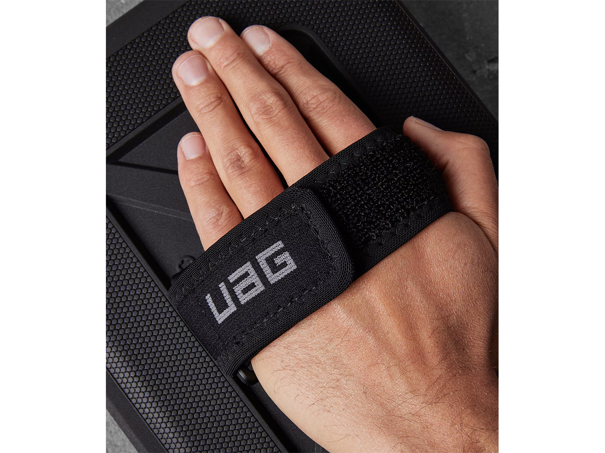 Het handige hand grip achterop deze UAG case is de meest onderscheidende eigenschap van dit iPad hoesje. Deze handgrip maakt het mogelijk om de iPad vast te houden zonder deze continu vast te hoeven klemmen, met pijnlijke handen tot gevolg. Steek uw hand door het verstelbare handvat en laat de iPad simpelweg op uw hand rusten terwijl de band voorkomt dat deze kan vallen. Zo heeft u optimale grip, controle én comfort. Dit maakt een enorm verschil, met name bij staand en lopend gebruik van de iPad.