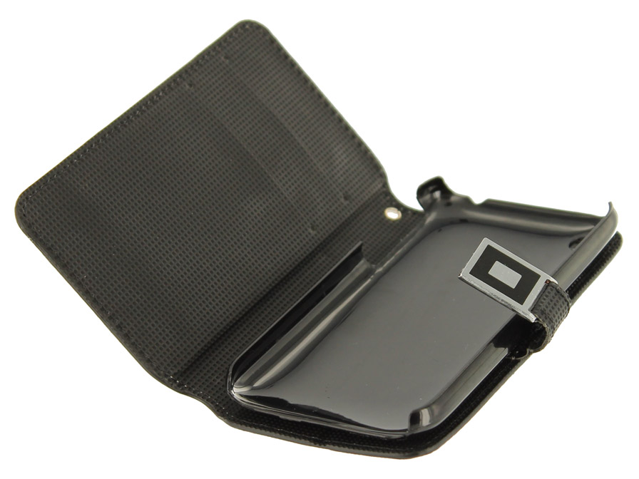Het hoesje klapt naar opzij open. De iPhone klikt in de hoes vast waarbij het volledige scherm, alle toetsen en aansluitingen vrij blijven. Uiteraard is er ook met de camera rekening gehouden. Het hoesje kan worden afgesloten met een magneetsluiting.