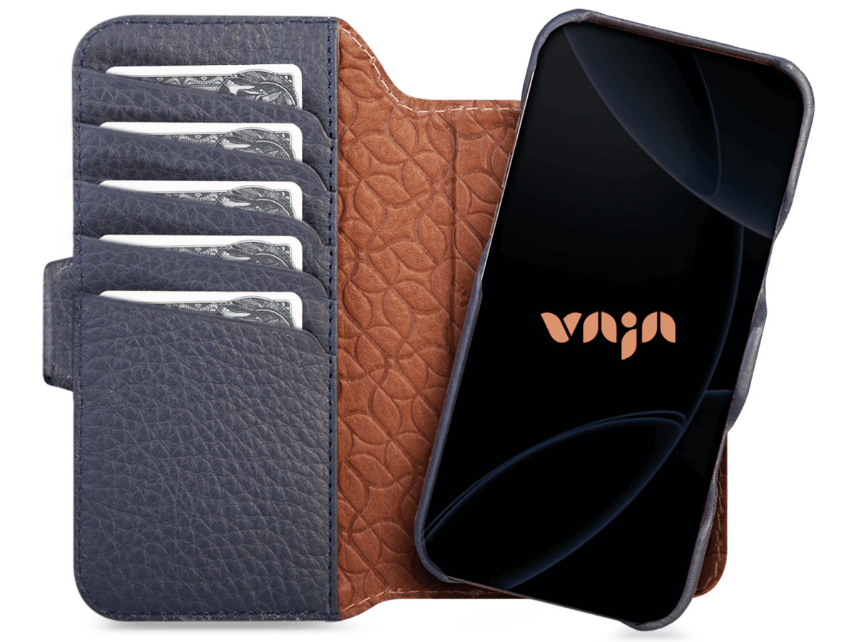 Vaja 2in1 V-Mag Leather Wallet Case MagSafe Donkerblauw - iPhone 17 Pro Hoesje Leer
