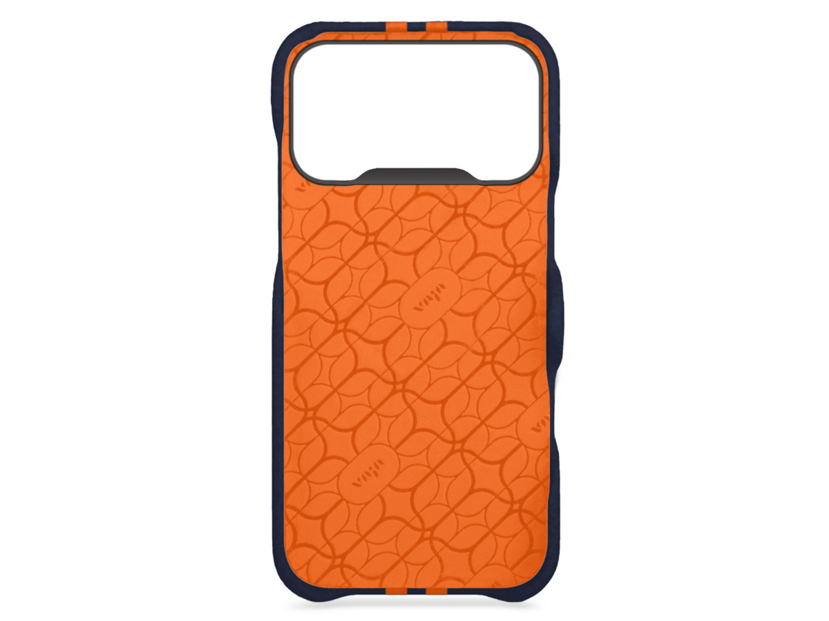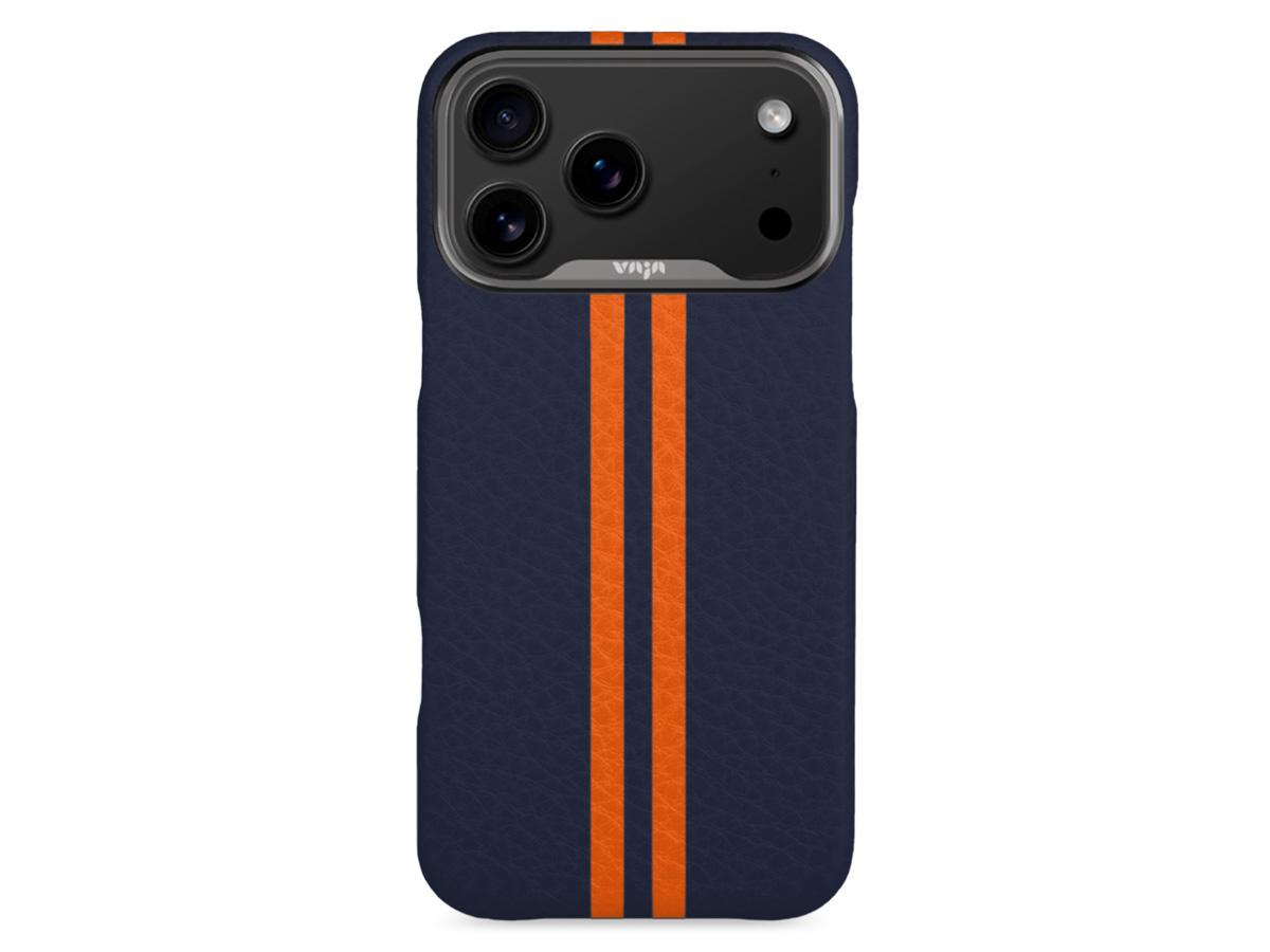 Vaja V-Mag Grip Leather Case MagSafe Blauw/Oranje - iPhone 17 Pro Hoesje Leer