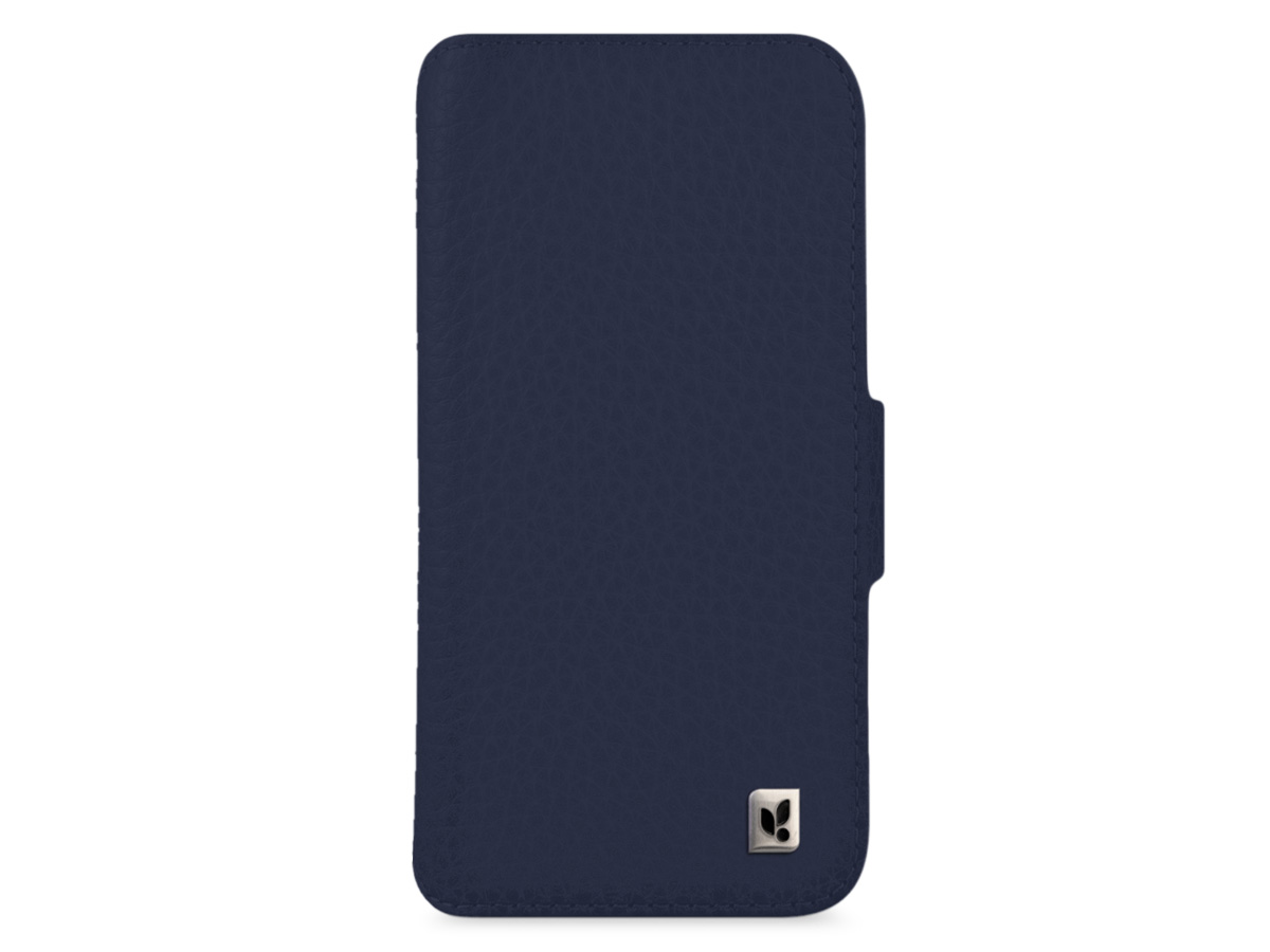 Vaja V-Mag Leather Wallet Case MagSafe Blauw/Oranje - iPhone 17 Pro Hoesje Leer