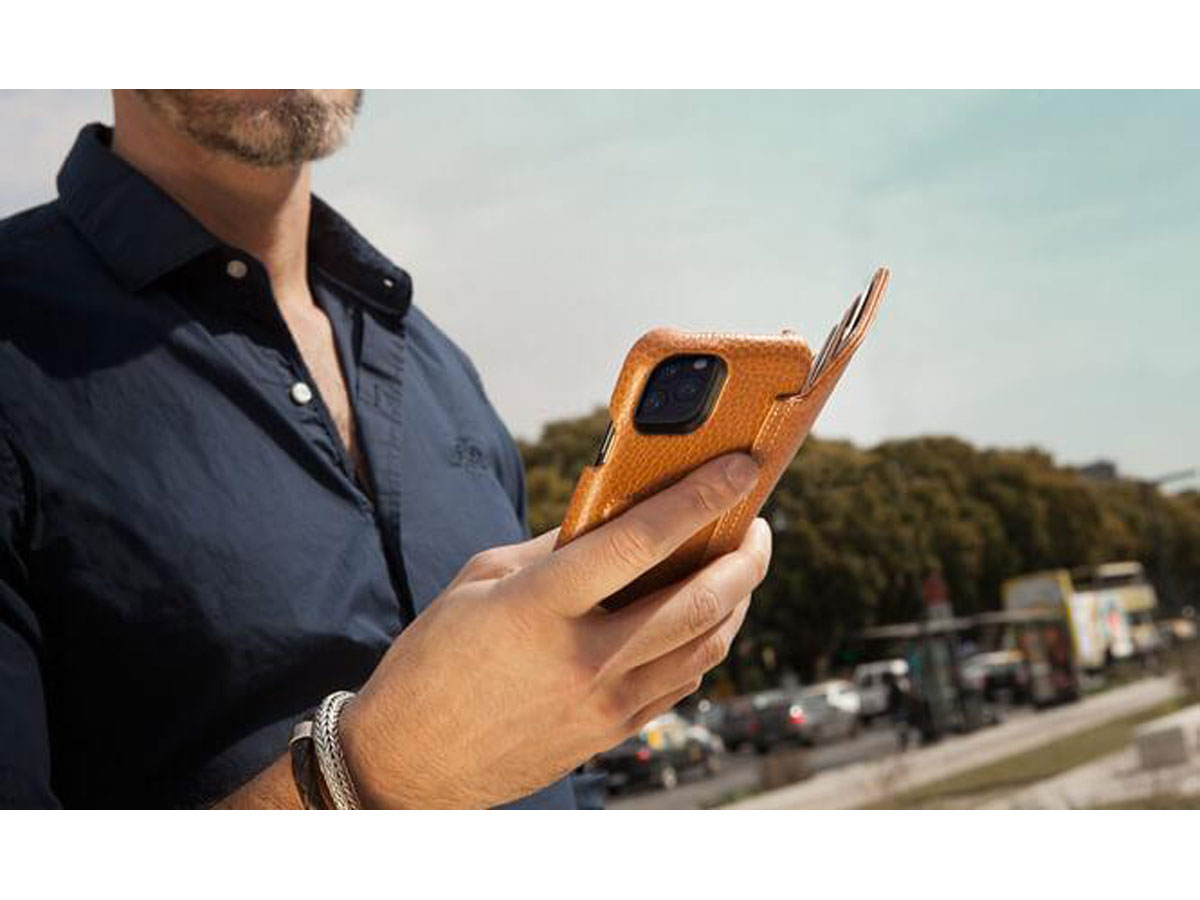 De Vaja Wallet Agenda case voor iPhone 11 Pro Max blinkt ook op dit punt uit, met 4 vakjes voor passen en 1 steekvak voor briefgeld of bonnetjes. Door het soepele leder waar de case van gemaakt is, is deze in staat zich op zijn inhoud aan te passen. Wilt u bijvoorbeeld 2 passen per vakje opbergen? In het begin zal dat strak zitten, maar al snel past het materiaal zich aan op deze nieuwe inhoud.