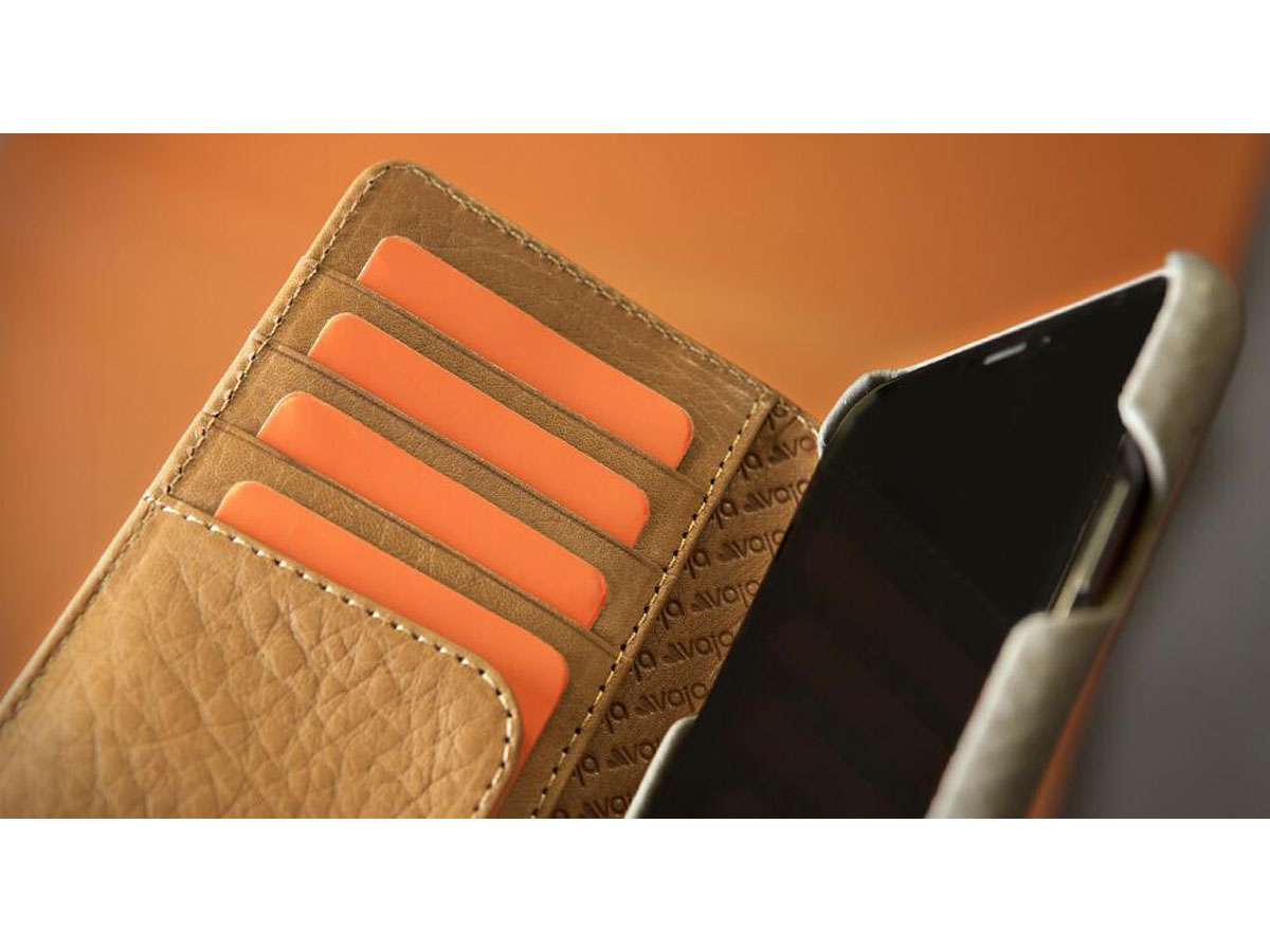 De Vaja Wallet Agenda case voor iPhone Xs Max blinkt ook op dit punt uit, met 5 vakjes voor passen en 1 steekvak voor briefgeld of bonnetjes. Door het soepele leder waar de case van gemaakt is, is deze in staat zich op zijn inhoud aan te passen. Wilt u bijvoorbeeld 2 passen per vakje opbergen? Dan het materiaal iets oprekken om dat mogelijk te maken.