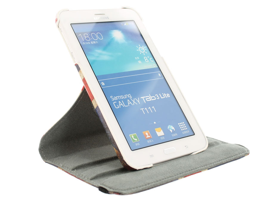 Deze speciaal voor de Samsung Galaxy Tab 3 Lite (T110) gemaakt hoesje heeft een hip uiterlijk door de stoere vintage Engelse vlag die over de gehele case is aangebracht. Naast het hippe uiterlijk biedt de case echter ook optimale bescherming én veel functionaliteit.