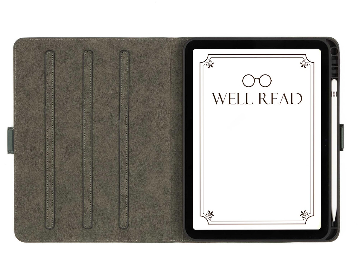 Deze Well Read iPad hoes geeft uw iPad niet alleen een geweldige look, maar beschermt ook heel erg goed. Dit begint met de houder waar u uw iPad in vast klikt: deze is gemaakt van onbreekbaar, schokabsorberend materiaal. De kunstleren buitenzijde vormt daar nog een laag overheen, inclusief een klep die over het scherm sluit.