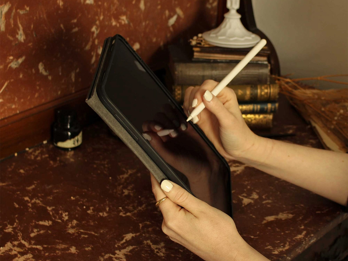 Heeft u een Apple Pencil of andere stylus voor uw iPad? Dan kunt u deze netjes in de hoes opbergen. Daar kan hij bovendien ook aan de zijkant van uw iPad koppelen om te laden en is hij bovendien beschermd tegen verlies en schade.