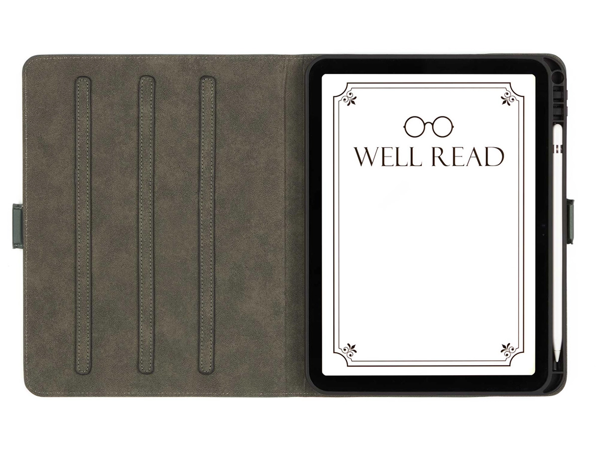 Deze Well Read iPad hoes geeft uw iPad niet alleen een geweldige look, maar beschermt ook heel erg goed. Dit begint met de houder waar u uw iPad in vast klikt: deze is gemaakt van onbreekbaar, schokabsorberend materiaal. De kunstleren buitenzijde vormt daar nog een laag overheen, inclusief een klep die over het scherm sluit.