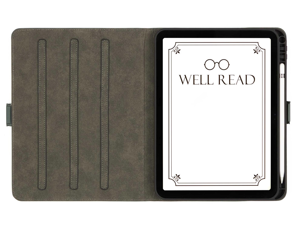 Deze Well Read iPad hoes geeft uw iPad niet alleen een geweldige look, maar beschermt ook heel erg goed. Dit begint met de houder waar u uw iPad in vast klikt: deze is gemaakt van onbreekbaar, schokabsorberend materiaal. De kunstleren buitenzijde vormt daar nog een laag overheen, inclusief een klep die over het scherm sluit.
