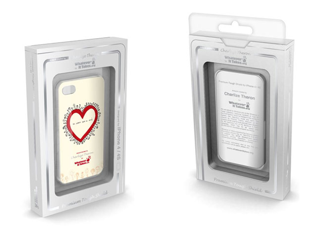 Voor deze case voor de iPhone 4 en iPhone 4S heeft Charlize Theron haar kunst gedoneert aan Whatever It Takes. Naast haar kunst vindt je ook haar handtekening achterop de case. De zijkanten zijn geheel transparant zodat de zilveren rand van je iPhone 4/4S gewoon zichtbaar blijft. Voor alle toetsen en aansluitingen zijn uitsparingen gemaakt waardoor de case niet stoort in het gebruik van uw iPhone.