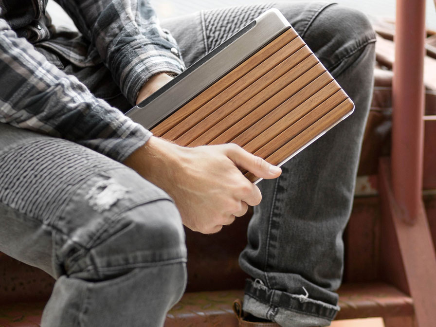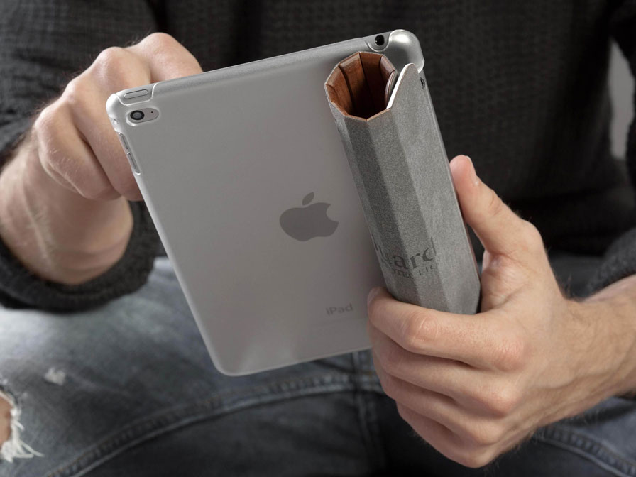 De iPad klikt eenvoudig vast in de case, waarbij alle toetsen, aansluitingen en de camera volledig vrij te gebruiken blijven. De houten klep van de hoes sluit magnetisch over het scherm om zo bescherming rondom te bieden. Daarbij ondersteunt het hoesje het auto-wake mechaniek: de iPad mini 4 gaat vanzelf aan en uit als u de hoes opent of sluit. De voorklep van het iPad mini 4 hoesje kan daarnaast ook opgerold worden om de tablet rechtop neer te zetten, of licht te laten hellen om comfortabel op het scherm te kunnen typen.