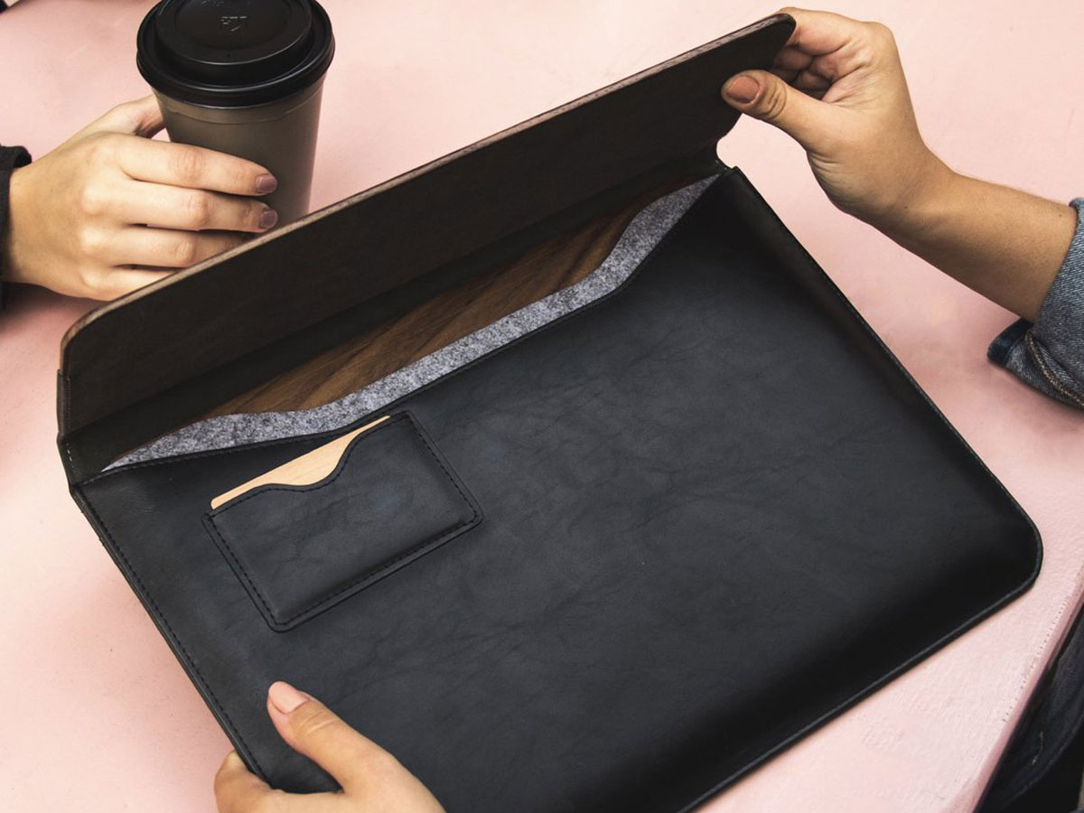 De Woodcessories MacBook sleeve biedt naast een veilige opbergplek voor de laptop ook een steekvak voorop, een steekvak achterop én 2 vakjes voor pasjes of visitekaartjes. Hiermee is de sleeve eigenlijk meer dan MacBook hoes alleen: je bergt er met gemak veel meer in op.