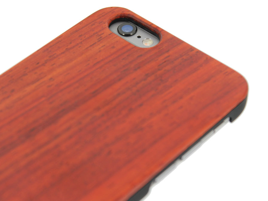 Dit Woodstylz houten iPhone 6/6s hoesje is gemaakt met echt Rozenhout op de achterzijde. Dit hout is aangebracht op de sterke polycarbonaat basis en opgebouwd uit meerdere lagen om extra stevigheid te bieden. Het warme, natuurlijke houten hoesje contrasteert prachtig met de strakke materialen van de iPhone 6/6s zelf en geven een karakteristieke look.