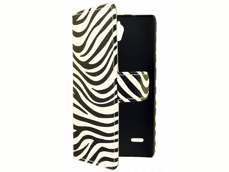 Deze kunstleren book-case is speciaal ontworpen voor de Huawei Ascend G700. Het hoesje is gemaakt van kunstleer met een hip zebra motief. Binnenin de case is er plek om pasjes op te bergen.